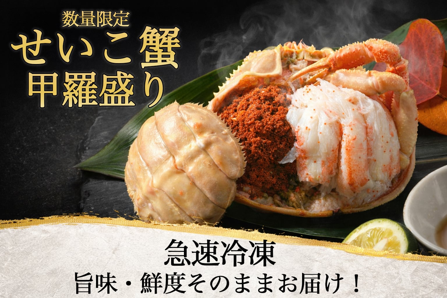 冬だけの味覚【せいこ蟹甲羅盛り】。職人が丁寧に「身・内子・外子」を贅沢に詰め込み、急速冷凍で旨さを閉じ込めました。解凍するだけで本格蟹の味わいをご自宅で。